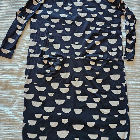 Hyväkuntoinen Papu Giant Split mekko (säilytyksestä vähän rypyssä). Edessä taskut. Musta väri säilynyt mielestäni hyvin, ei pahasti haalistumaa.