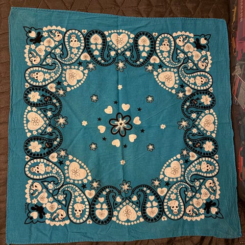 Tummansininen Bandanahuivi. Hajusteeton, eläimetön ja savuton talous.