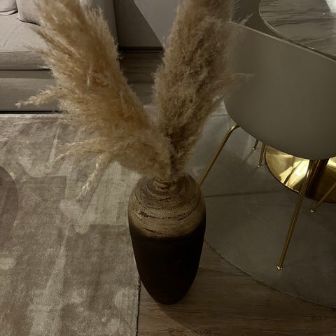 Uuteen kotiin kaunis ruskea ruukku joka toimii myös kynttilälyhtynä. Korkeus 36 cm, leveys noin 25 cm.