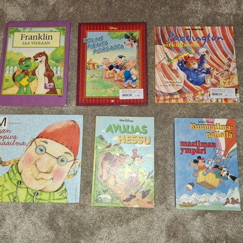 Myydään kirjasetti, jossa 7 lastenkirjaa. Joukossa uusia kirjoja sekä siistissä kunnossa olevia luettuja kirjoja. Osa kirjoista on ostettu meille käytettynä