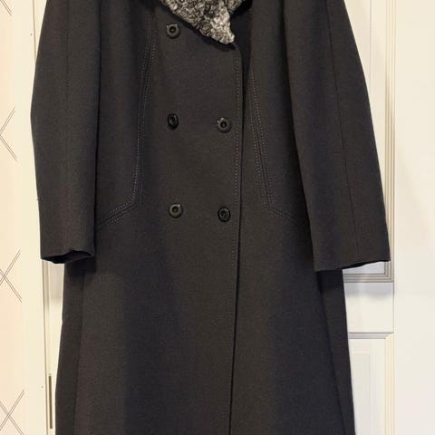 Kaunis vintage villakangastakki turkiskauluksella.