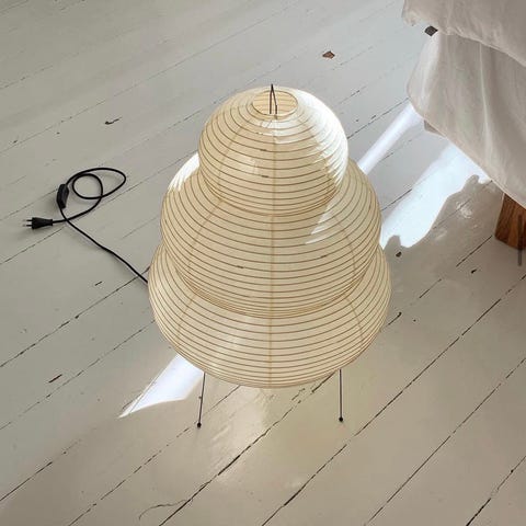 Vitra AKARI YP1 riippuvalaisin paperivarjostimella. Valaisimessa on vaalea, taiteltu paperivarjostin ja musta johto. Muoto on geometrinen ja varjostin ympäröi lampunkannan metallirakennetta. Sopii yleisvalaistukseen esimerkiksi olohuoneeseen, makuuhuoneeseen tai ruokailutilaan. Käyttää vaihdettavaa lamppua.