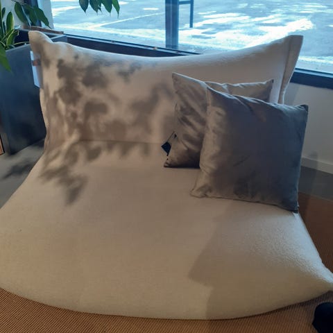 Fatboyn BonBaron Sherpa nojatuoli, sävy ecru. Kunnon muhkea ja pehmoinen löhötuoli, myydään muuton tieltä pois. Ohv 650e.