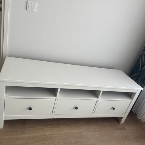 Myydään oma käytetty IKEA Hemnes TV-taso. Tämä on klassinen malli, massiivipuusta valmistettu ja erittäin tukeva. Siinä on kolme tilavaa laatikkoa ja avoimia hyllyjä, runsaasti säilytystilaa. Kaikki toimii normaalisti.
