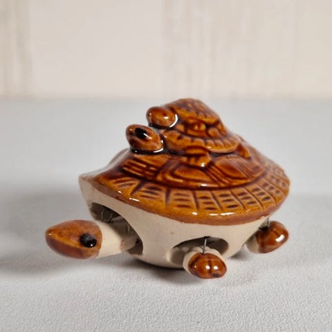 Kilpikonna symboloi pitkäikäisyyttä, vakautta ja on suosittu feng shuin elementti. Täydellinen pieni sisustusyksityiskohta tai onnea tuova talismaani työpöydälle tai hyllylle.