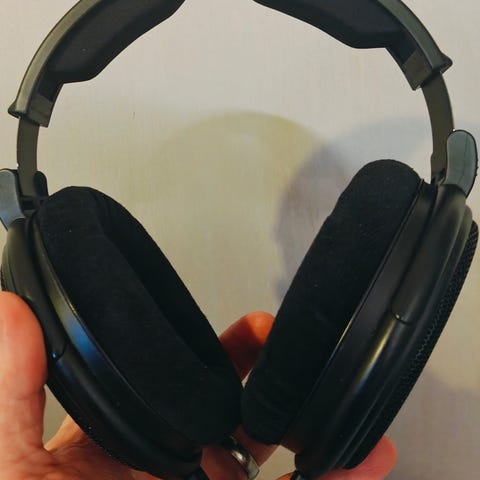 Hyväkuntoiset Sennheiser HD600 kuulokkeet joutavana.