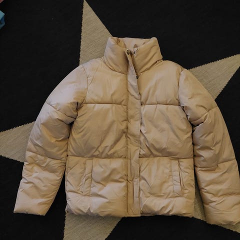 Todella siisti, ehjä ja lämmin nuoren toppatakki. Irrotettavassa hupussa karvareunus, isot taskut.