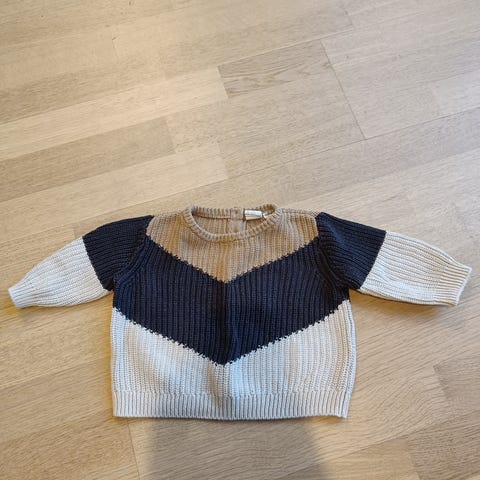 Neulottu sininen neule ja beige housut, koko noin 62 (2-4kk), uusi, käyttämätön.