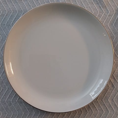 Arabia TARJOILUVATI, valkoinen pohja ja monivärinen kukkakuviointi. Lautasen reunassa kultaraita. Sopii kattaukseen ruoka- tai tarjoilulautaseksi. Pohjassa piippuleima. Halkaisija 33cm