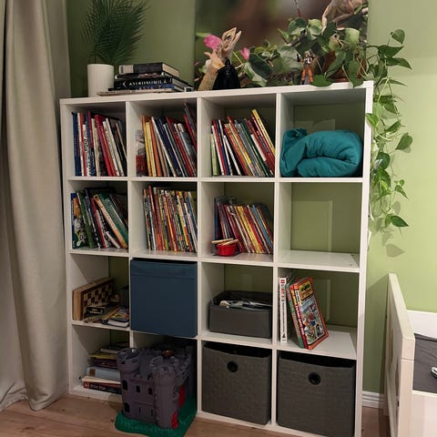 Jyskin hyllymoduuli omilla jaloilla. Osia saa koottua päällekkäin, joita Jysk vielä myy. Ollu kaksi kk käytössä, nyt ei löydä paikkaansa. Lokeroihin sopii myös hyvin säilytyslaatikot. Yhden lokeron koko on 33 x 33. Ovh. 55€.