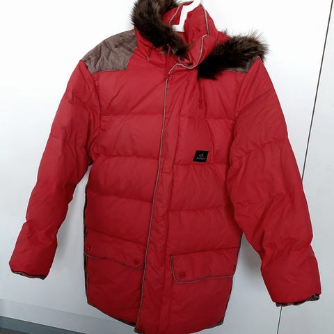 Untuva takki, kokomerkintä 38 (käytännössä enemmänkin 40), käy myös hoikahkolle nuorelle / miehelle, jos muuten koko osuu, eli on unisex malli. Vetoketju- ja nepparikiinnitys, sivutaskut, irroitettava huppu (nepparit). Hyvin vähäistä käytönjälkeä (esim. taskun lähellä nuo pienet tahrat lähtenevät pesussa, muuta mainittavaa en tarkistuksessa havainnut), vesipestävä ohjeen mukaan, mutta ei siis vaadi välitöntä pesua. Vähän käytetty, kun käyttäjälleen (36 - 38) hieman liian iso.