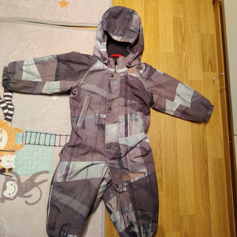 Hyvä lämmin toppapuku koossa 86. Heijastavat yksityiskohdat. Jalkalenkit kuluneet mutta toimii vielä, hyvässä käytetyssä kunnossa oleva haalari.