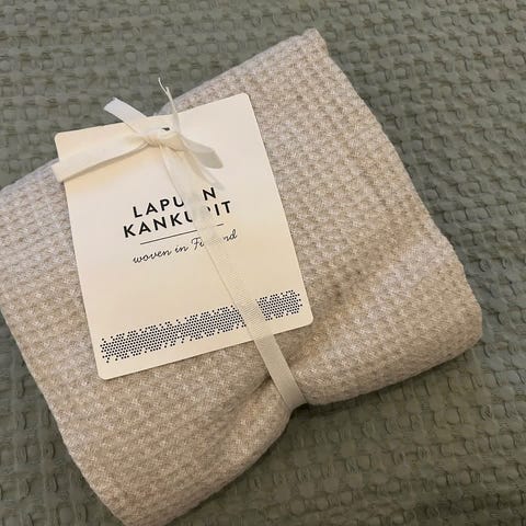 Lapuan Kankurit torkkupeitto vaaleanpunainen. Koko noin 135 x 180cm.