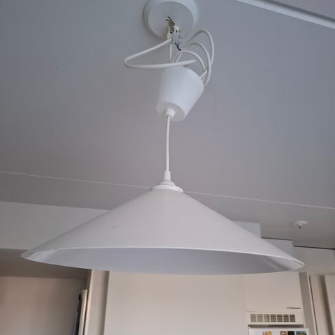 Kuvan valaisin ja uusi Led-polttimo. Kupu on muovia. Tässä valaisimessa uusi maadoitettu pistotulppa valmiina.
