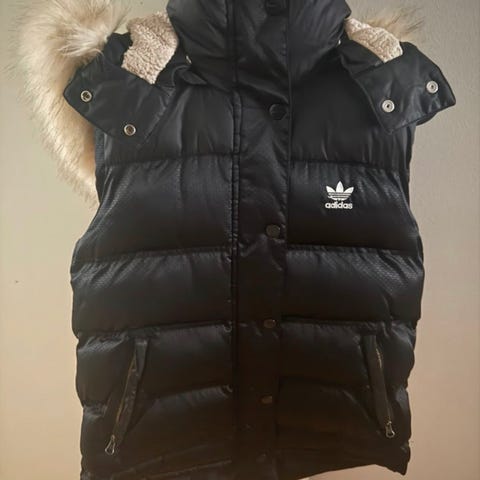 Adidaksen toppaliivi, koko 40 (minusta vastaa enemminkin kokoa 38). Väri musta. Edessä vetoketju (ja nepparit). Pitkähkö malli. Vähän käytetty.
