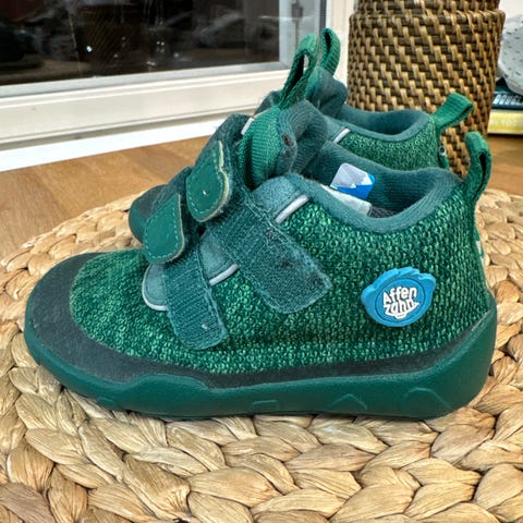 Käytetyt mutta vielä toimivat paljasjalkakengät. Edessä olevat heijastimet kuluneet mutta ei ole vaikuttanut käyttöön.