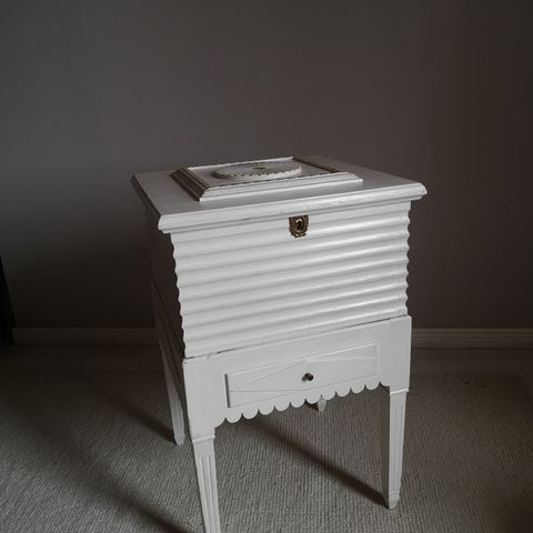 Kustavilaisen astiakaappi, sivussa ylä reunassa maali on kulunut ja pientä käyttö jälkiä löytyy muuten siisti kunto avain on tallessa