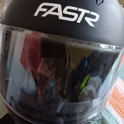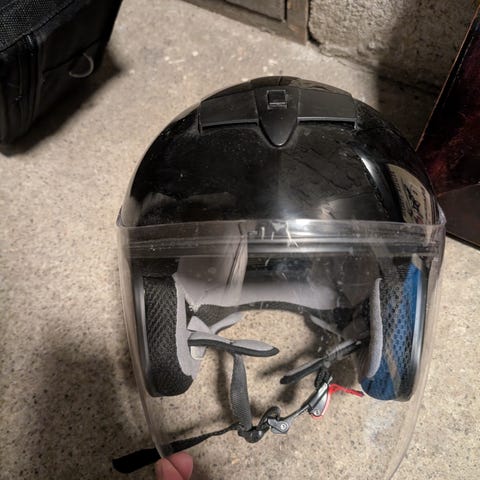Kypärä ei ole saanut osumia. Ainoastaan joitakin normaaleja käytönjälkiä (pintanaarmuja) on.
