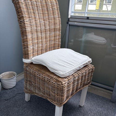 Rottinkinen tuoli, jossa pyöreä, avoin istuinosa ja jalustarunko. Sopii esimerkiksi sisätiloihin, parvekkeelle tai terassille istuimeksi tai sisustuselementiksi. Materiaalina luonnonvärinen rottinki.