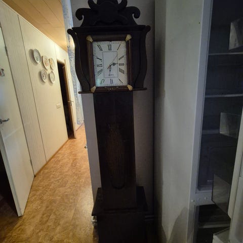 Puinen Seinäkello, toimii sormiparistolla, seinä kiinnite, ehjä.