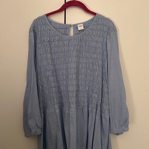 Uusi Noom by Stockmann pusero naisille, koko M. Sininen, ohuesti raidallinen malli. Valmistettu puuvillasta. Pitkät hihat ja V-muotoinen pääntie.