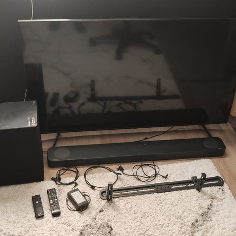 Siitä täysin toimiva soundbar langattomalla subbarilla. Kaukosäädin ja tarvittavat kaapelit saa mukaan. Hinta 250€.