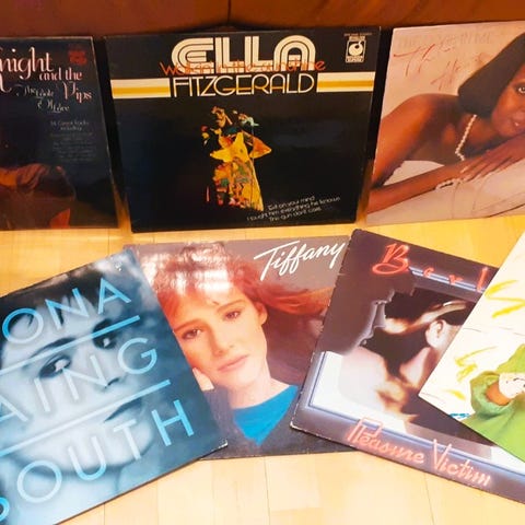 LP-levyjä Carola Paula Abdul Olivia Newton-John Rebbie Jackson yms