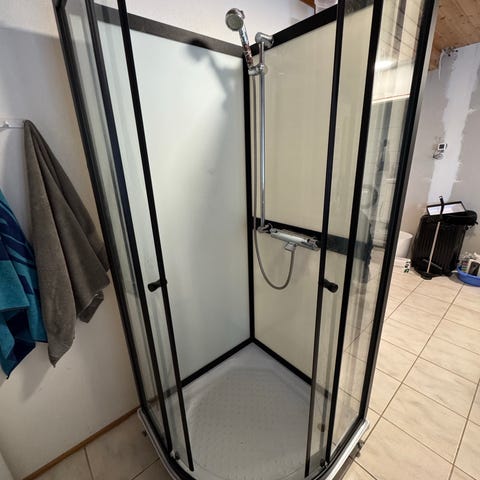 Tarjolla K-Raudasta aikoinaan ostettu puolikuun muotoinen suihkunurkkaus lasiovilla, joissa alumiinikarmit. Mielestäni siistikuntoinen. Saa tulla kurkkaamaan paikan päälle suihkunurkan kuntoa.