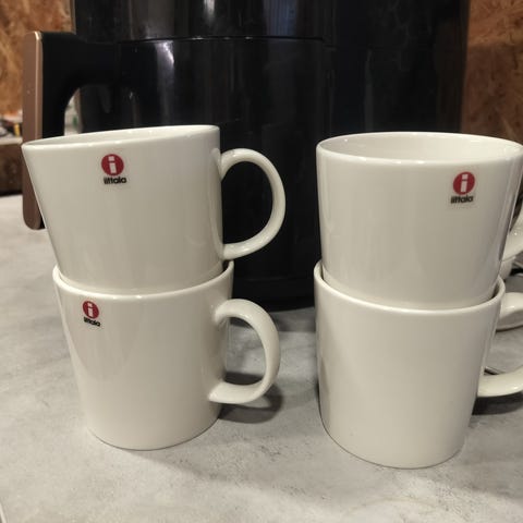 Uudeveroisia, osa käyttämättömiä teeman valkoisia mukeja. Mukeja 8 kappaletta.