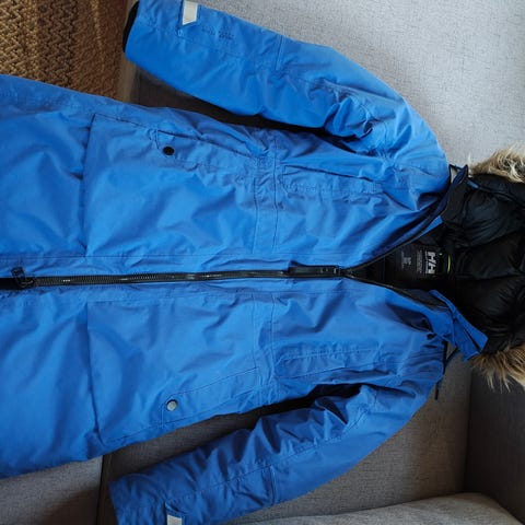 Helly Hansen naisten talvitakki, koko M. Sininen polyesteristä valmistettu takki, jossa on kiinteä huppu. Edessä vetoketju ja neppilista, sivuilla vetoketjutaskut. Hihassa Helly Hansen -logo. Sopii talvikäyttöön, lämmin laadukas takki.