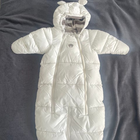 Vauvan H&M toppapussi, valkoinen, koko 50/56cm. Toppapussin saa myös haalariksi vetoketjulla. Ollut yhdellä lapsella. Siisti ja ehjä hyvä vähän käytetty kunto.