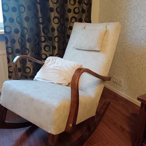 Nahkaverhoillut nojatuolit (2kpl), jossa korkea selkänoja ja pehmustettu istuin. Verhoilu on ruskeaa, napitettua nahkaa. Rungossa on vaalea puu, käsinojat ja sorvatut sivupinnat. Nojatuoli sopii olohuoneeseen tai muuhun oleskelutilaan istuimeksi ja rentoutumiseen. Tuolit ovat Virroilla. Ne voi noutaa sopien myös Ruovedeltä, Seinäjoelta tai Kauhavalta. Mahtuvat purettuna keskikokoiseen henkilöautoon. Helpot purkaa ja koota.