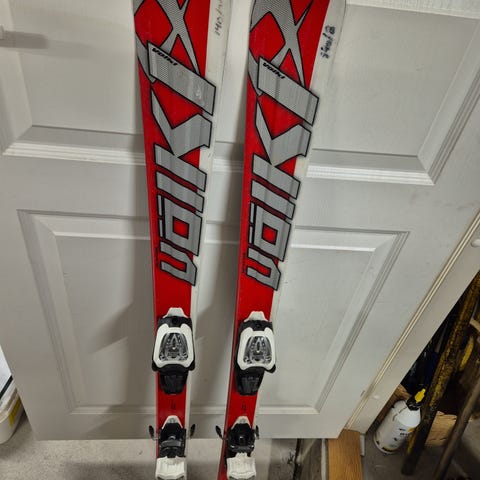 Völkl Racetiger Junior GS laskettelusukset junioreille. Väri punainen valkoisilla ja harmailla yksityiskohdilla. Suksissa on integroidut säädettävät siteet.