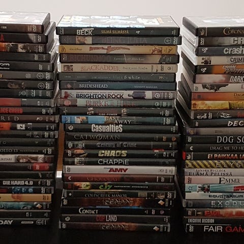 DVD Leffa Paketti 49kpl + pari naarmusta kaupanpäälle.Suurin osa ulkomaisia ja kaikissa Suomitekstit.Joukossa myös muutama R-Kioskin vuokra DVD.