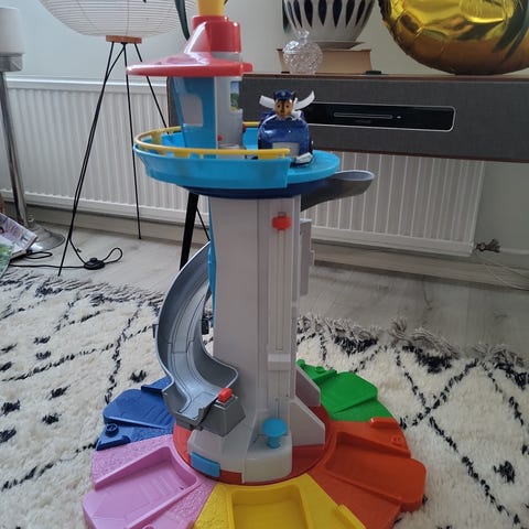 Settiin kuuluu Paw Patrol -sarjasta tuttu valvontatorni sekä useita ajoneuvoja ja hahmoja. Torni pyörähtää napista painamalla ylös ja siinä on erilaisia äänitehosteita.