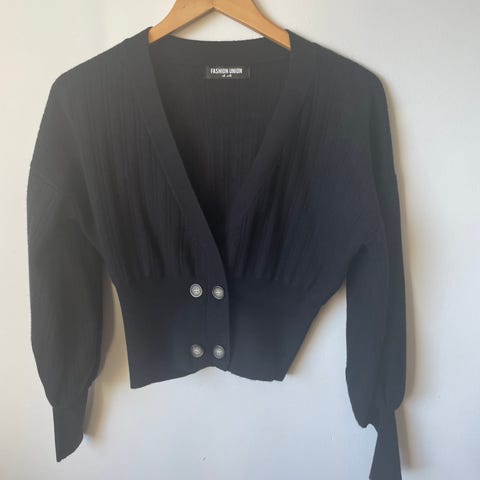 Käyttämätön A View musta röyhelöneuletakki. Sidottavissa nauhoilla edestä.