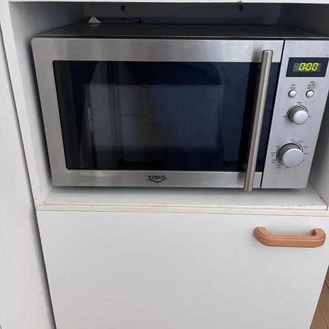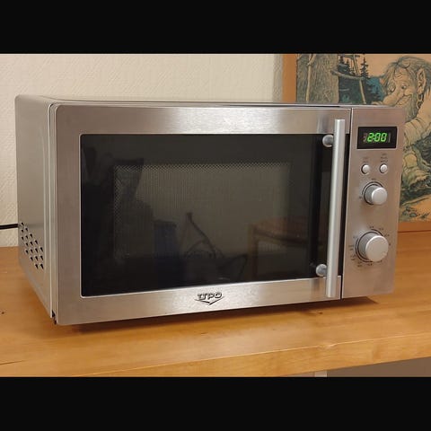 UPO UMO230E mikroaaltouuni teräspintaisella ulkokuorella. Laitteessa on lasinen pyörivä alusta ja sisätila valkoista emalia. Ohjauspaneelissa on digitaalinen näyttö, painikkeet ja valintarulla, joilla säädetään tehoa, aikaa ja automaattiohjelmia (esim. neste, riisi, spagetti, peruna, lämmitys, kakku, pizza ja popcorn). Takakilven mukaan malli on UMO230E, tyyppi SKR17J7EJ, käyttöjännite 230–240 V / 50 Hz. Kuoren päällä on muutama näkyvä naarmuja, jotka eivät vaikuta laitteen toimintaan. Myös mikron lamppu palanut, mutta toimii muuten hyvin. Ovh. 89,90e