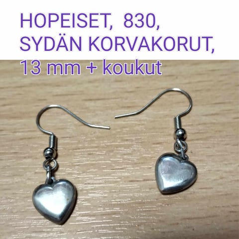 Käytetyt mutta ehjät ja siistit hopeiset sydänkorvakorut, vaaleanpunaiset zirkoni kivillä.