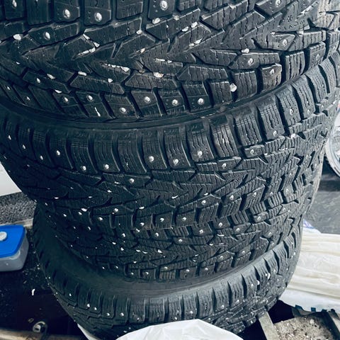 15 tuumaset alumiinivanteet nokian nordman 7 nastarenkailla joissa pintaa 7-8mm. Yhdessä vanteessa hyvin pieni kanttari osuma. Nastat tallella