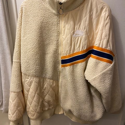 Vanhempi Niken valkoinen takki. Hihansuissa peukalo-aukolliset lumilukot, kiristysnyörit vyötäröllä ja hupussa, kahteen suuntaan toimiva vetskari ja oikeen mp3-soittimelle tasku sisäpuolella. Rinnassa kermanvalkoinen Niken logo (katso kunto kuvasta) ja hihassa kans joku logo, josta jäljellä enään air teksti
