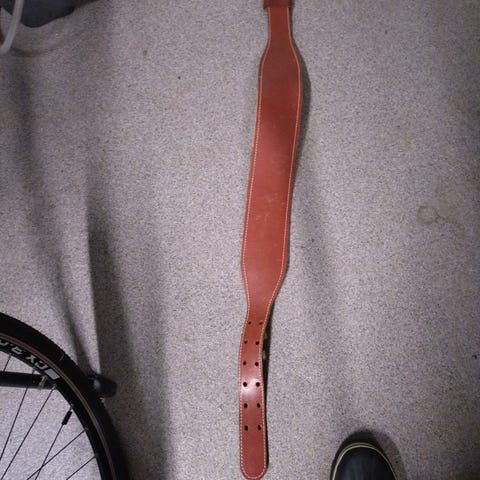 Gasp painonnostovyö. Vyö on mustaa nahkaa, jossa kontrastiväriset tikkaukset ja metallinen solki. Leveä ja tukeva malli sopii voimaharjoitteluun ja painonnostoon. Vyössä on useita reikiä koon säätöä varten sekä Gasp-logo sivussa ja vyölenkissä. Koko L