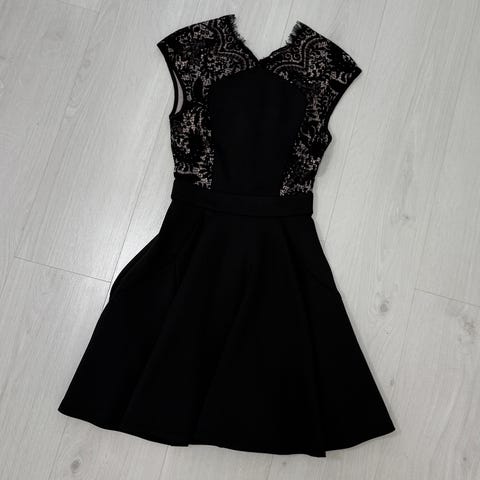 Siisti muutaman kerran pidetty mekko, vastaa n.S-kokoa. Olka-helmapituus n.103. Mukana vyö.