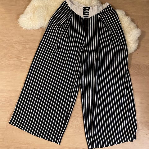 Lahkeet yltävät polvien alle, kuten yleensä culottes-mallisissa housuissa