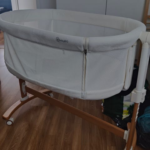 Sivuvaunusänky, väri valkoinen. Sänky kiinnitetään vanhemman sänkyyn sivuvaunuksi, jolloin vauva nukkuu omassa sängyssään vanhemman sängyn vieressä. En tiedä minkä valmistajan koska tullut meille käytettynä. Maalipinnassa on kulumisen jälkiä, kuvistakin näkee. Patja on uusi, vauva ei ole nukkunut siinä kertaakaan. Koiratalous. Nouto Suutarilasta tai korvausta vastaan voin tuoda johonkin lähialueelle. ❤️