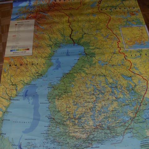 Vanha Suomen kartta vuodelta 1933. Kunto kohtalainen, näkyy kuvissa tarkemmin. Koko 120 x 80cm.
