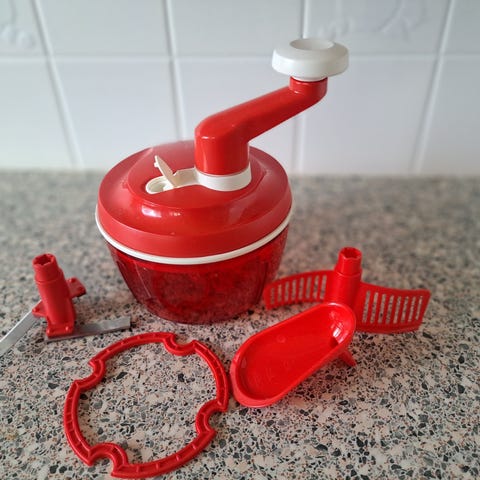 Käyttämätön Tupperware Extra Chef. Hienontaa vihannekset, vatkaa kastikkeet, majoneesin, salaatinkastikkeet ja kerman. Mittataulukko 1,2 litraan asti. Vain nouto.