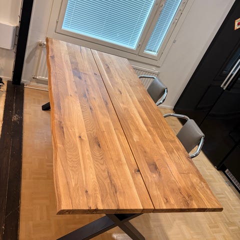 Pöytä ei ehtinyt olla kauaa käytössä joten se on kuin uusi, jos olet harkinnut vekestä kyseistä lankkupöytää niin säästyt kasaamiselta tässä.