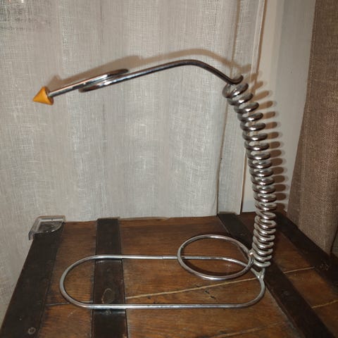 Puusta tehty ja maalattu teline viinipulloille. Käytönjälkiä on mutta ehjä. Ei sopinutkaan meidän keittiöön.
