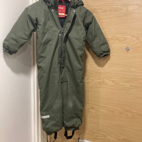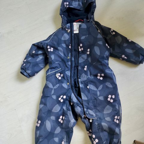 Reiman sininen talvihaalari kokoa 98cm. Paljon jo elämää nähnyt, mutta kelvannee vielä kakkoshaalariksi. Kauempaa näyttää vielä siistiltä, mutta lähemmin tarkasteltuna polvissa ja muuallakin selkeää pintakulumaa. Piti kuitenkin jälkikasvun alkutalvesta lämpimänä kotipihaleikeissä.