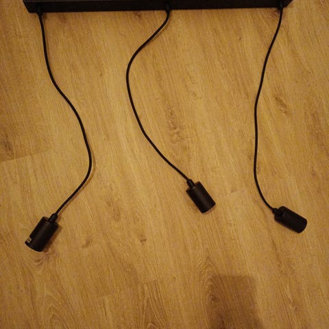 Myydään musta kattovalaisin, jossa paikka kolmelle lampulle. Lamput sisältyy hintaan. Yhden lampun johdon pituussäätö mennyt rikki, joten en lähtisi sitä enää säätämään.